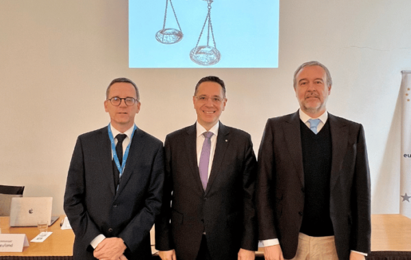 A la fin de la séquence officielle, Marc Schmitz, président de l’UIHJ avait l’occasion de présenter à S.E. Eric Dupond-Moretti une sélection de publications de l’UIHJ, tel que le Code Mondial de l’Exécution et le Code Mondial de l’Exécution Digitale.